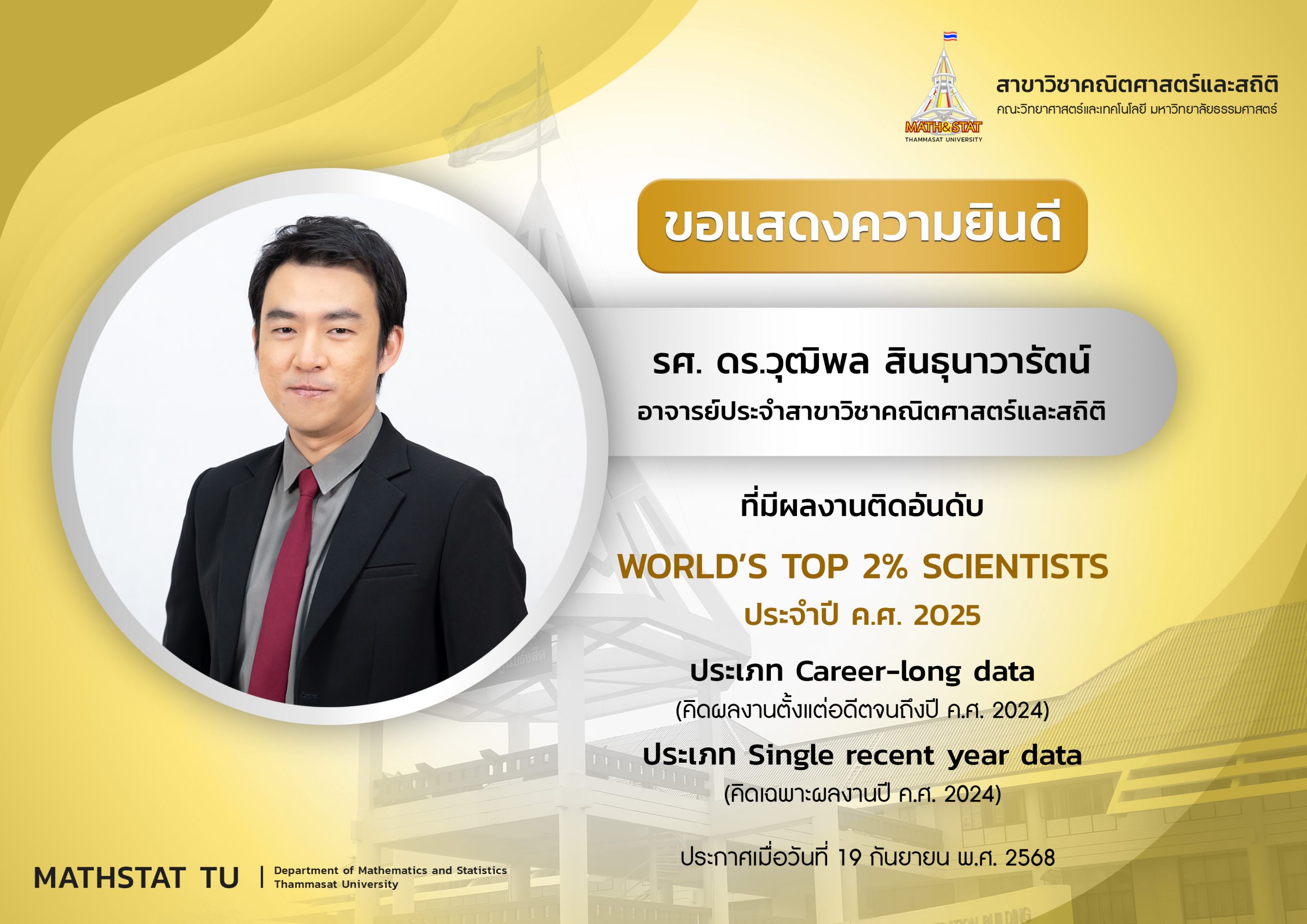 รศ. ดร.วุฒิพล สินธุนาวารัตน์ ที่มีผลงานติดอันดับ WORLD”S TOP 2% SCIENTISTS ประจำปี ค.ศ. 2025