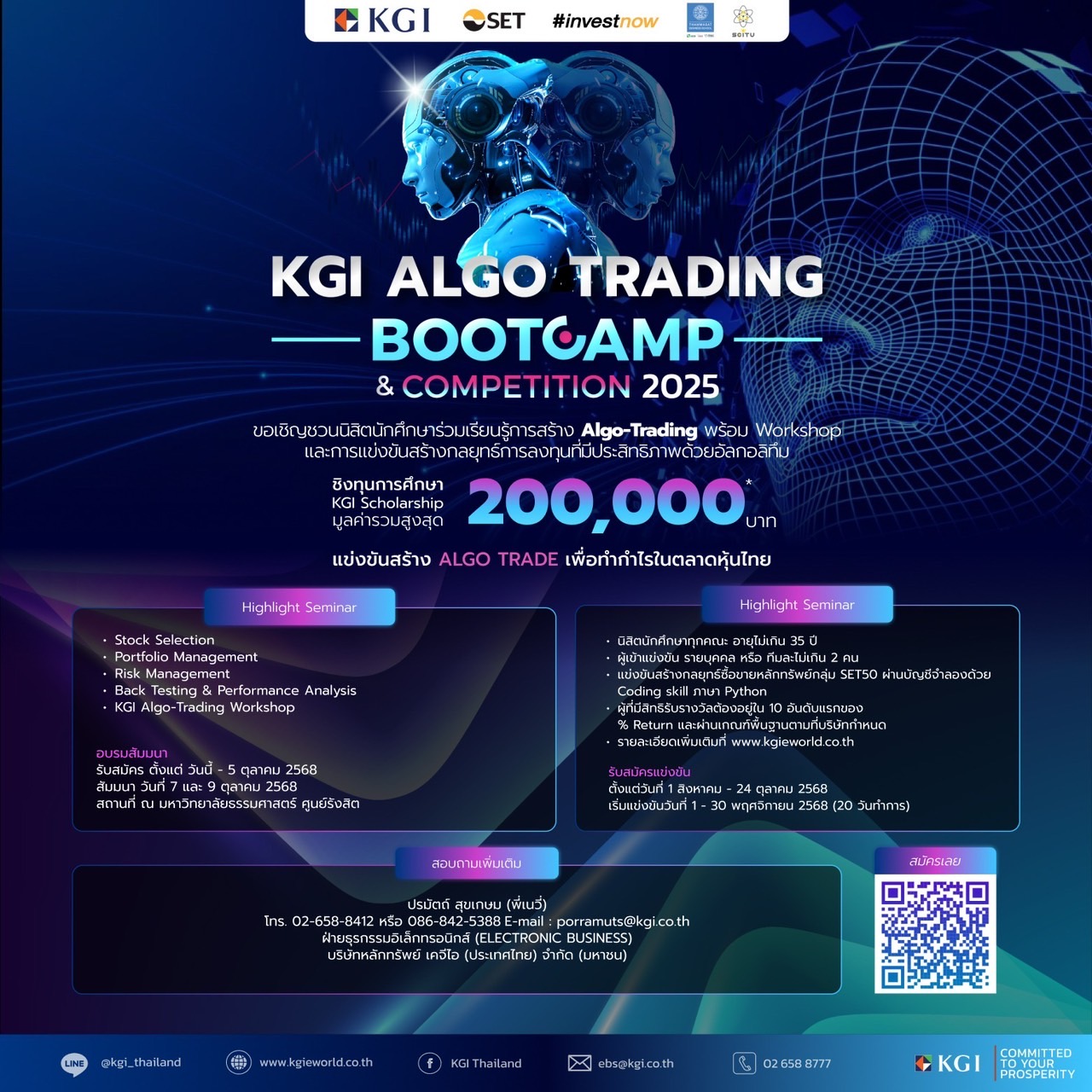 การสร้าง AIgo-Trading พร้อม Workshop และการแข่งขันสร้างกลยุทธ์การลงทุนที่มีประสิทธิภาพด้วยอัลกอลิทึม ชิงทุนการศึกษา 200,000 บาท
