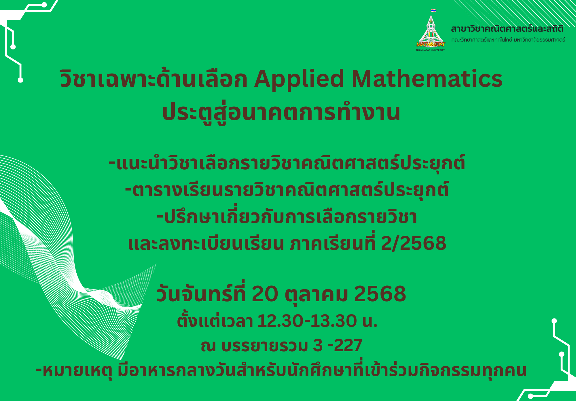 ขอเชิญนักศึกษาหลักสูตรคณิตศาสตร์ประยุกต์