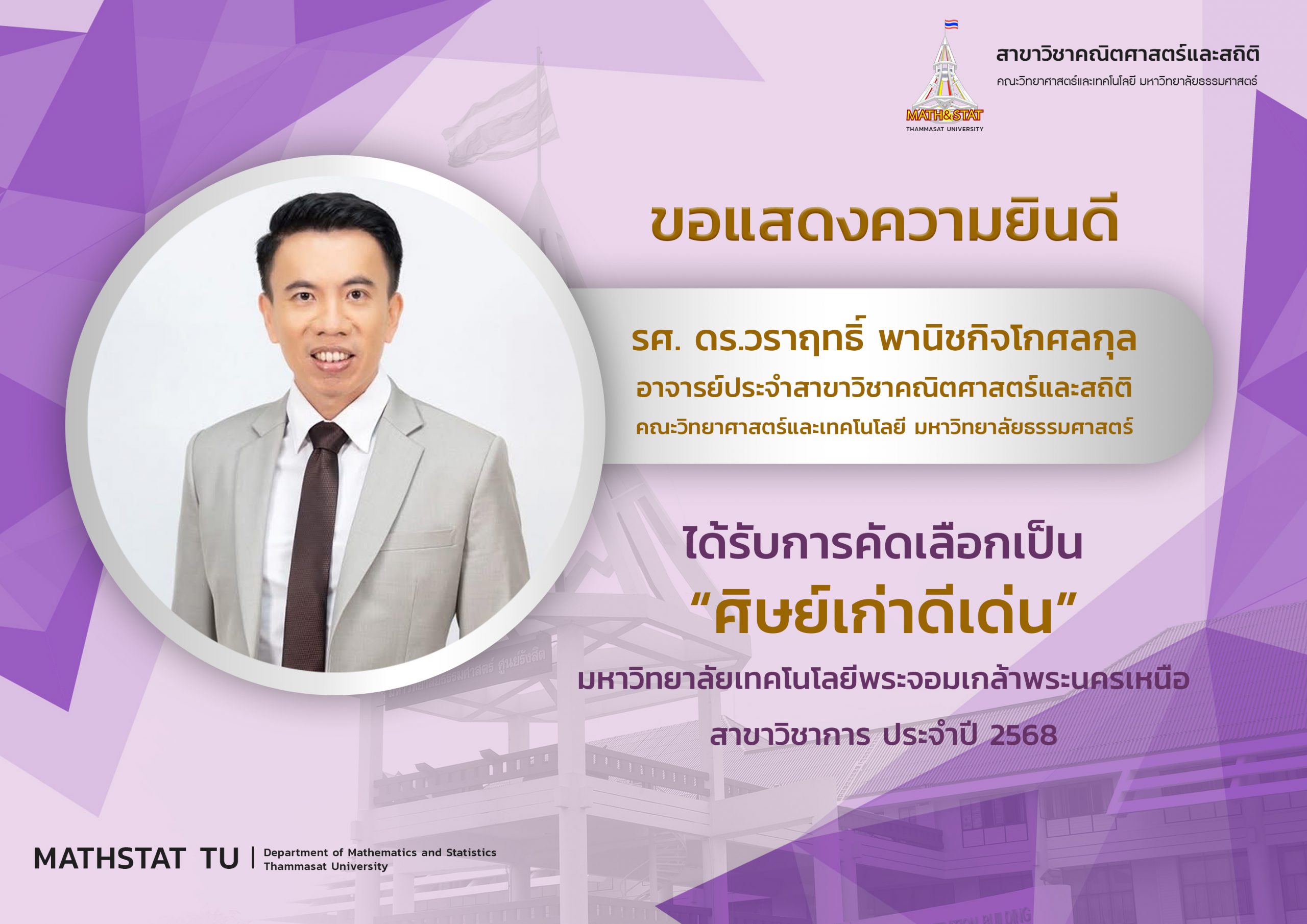รศ. ดร.วราฤทธิ์ พานิชกิจโกศลกุล ได้รับการคัดเลือกเป็น “ศิษย์เก่าดีเด่น” มหาวิทยาลัยเทคโนโลยีพระจอมเกล้าพระนครเหนือ ประจำปี 2568