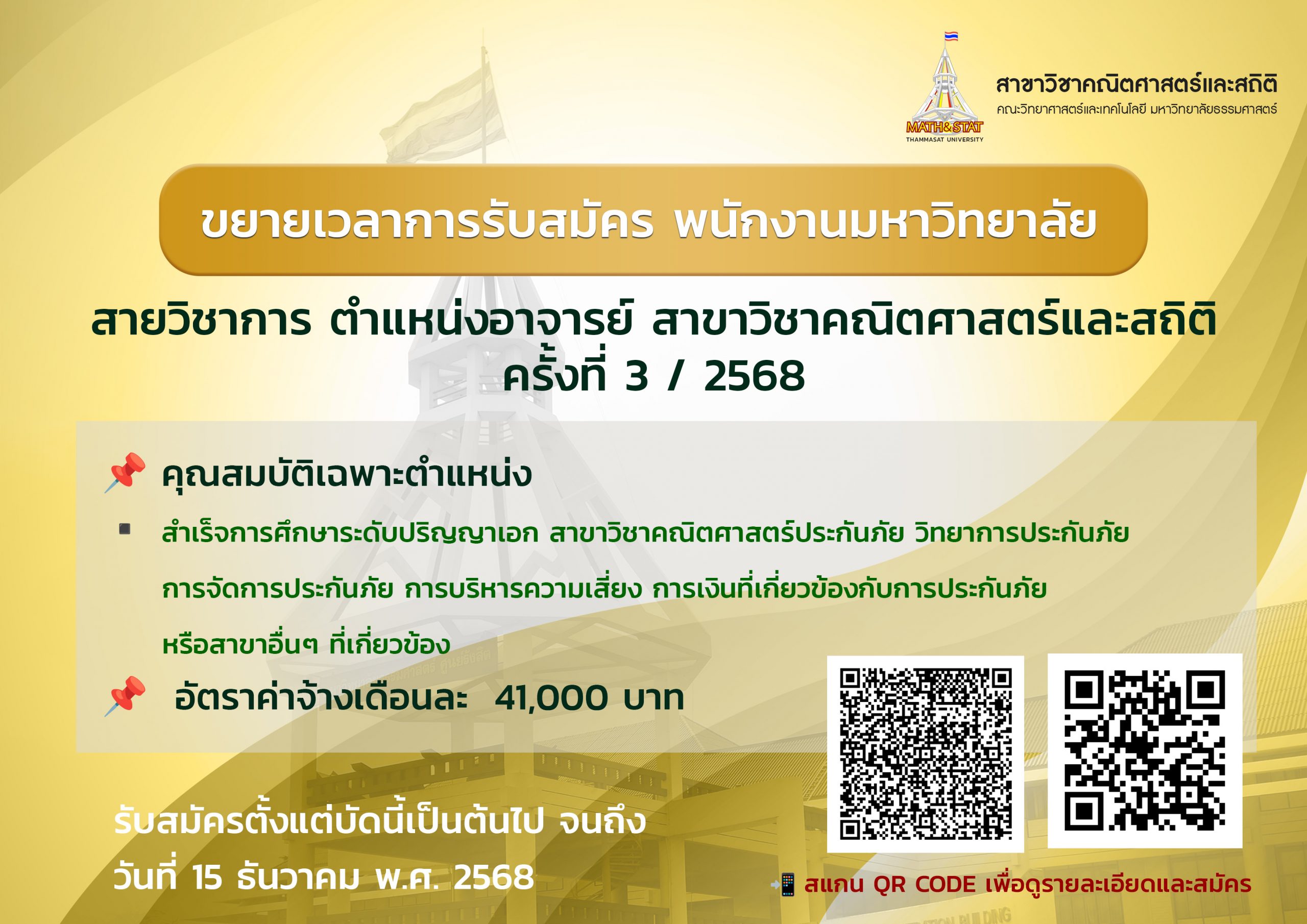 ตำแหน่งอาจารย์ สาขาวิชาคณิตศาสตร์และสถิติ ครั้งที่ 3/2568